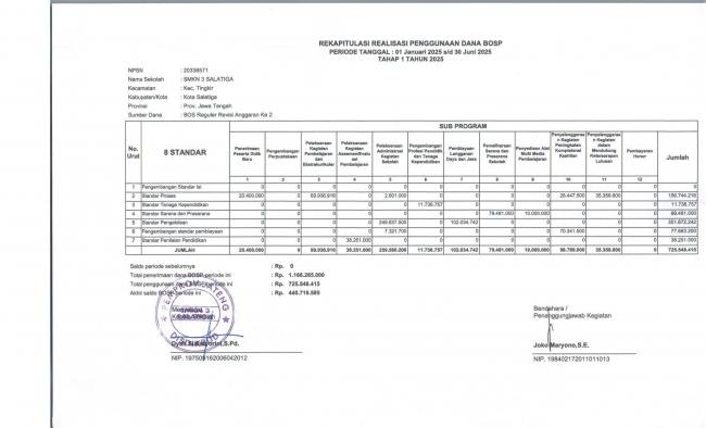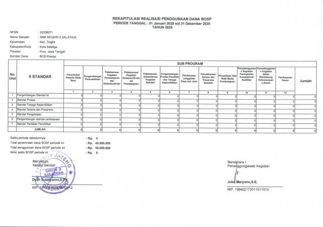 SEBAGAI BENTUK LAPORAN, KREDIBILITAS, DAN TRANSPARANSI BERIKUT KAMI SAMPAIKAN RAKAPITULASI REALISASI PENGGUNAAN BOSP REGULER TAHUN 2025 SMK...