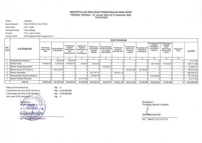 SEBAGAI BENTUK LAPORAN, KREDIBILITAS, DAN TRANSPARANSI BERIKUT KAMI SAMPAIKAN RAKAPITULASI REALISASI PENGGUNAAN BOSP REGULER TAHUN 2025 SMK...